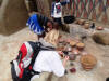 | Auf einem kleinen Markt bestaunen wir eine Autoreparatur - oder besser, in welchem Zustand die Autos noch zum Fahren gebracht werden, eine Tankstelle (abgefüllte Flaschen, die ohne dass sich jemand sorgt in der glühenden Sonne stehen), eine Weberin an ihrem Webstuhl und einen schönen großen Baobab-Baum. Unser Guide bekommt diesmal kein Trinkgeld, dafür kaufen wir aber noch einige Mitbringsel in seiner Werkstatt. |