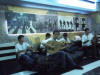 | Zuerst brauchen wir Futter. Im Keller eines Chickengrills finden wir einen gemütlich eingerichteten Raum, in dem eine usbekische Liveband spielt. Nach einigen Stücken sind wir beim lustigen Melodienraten, denn es werden mit Geige, Lauten und Darabouka Songs von den Beatles, Michael Jackson, Celine Dion und Ricky Martin gespielt; außerdem erkennen wir Lambada und Aischa - und es klingt alles typisch usbekisch!! Wir futtern uns durch die Speisekarte - wie immer teilen wir alles, was auch gut so ist, denn es ist für jeden Geschmack etwas dabei. Gut gestärkt gehen wir weiter. |