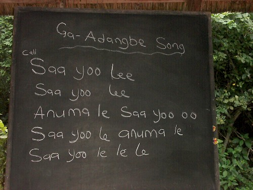 Ga-Adangbe Song II Nachdem aus einem Streit ein Kampf wurde, ruft einer die anderen um Hilfe, die beiden Streithähne zu trennen. Der Gesang erklingt zum Stück "Tattu". |