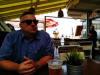 Der Regen schien hier eigentlich schon durchgezogen zu sein; während unseres Strandbieres (es gibt tatsächlich ein American Amber Wheat - eines unserer Lieblingsbiere) brauen sich die Wolken aber so zusammen, wie sie im Film "Independence Day" aussehen. Wir sind tapfer, halten auf Sandsacksitzen am Europalettentisch aus und werden damit belohnt, dass der gesamte Wolkenstapel vorbeizieht und die Sonne wieder für uns lacht. |