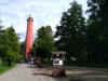 | Der Leuchtturm hier ist schon auffällig anders, weil er vollkommen aus rotem Backstein gebaut ist. Wir spazieren an vielen militärischen Anlagen des 2. Weltkrieges vorbei, die besichtigt werden könnten, was wir aber nicht wollen, vorbei zum Strand. Ein Steg führt weiter bis zum Hafen (der Strand eignet sich leider nicht für einen Spaziergang). |