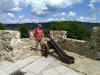 Eine Schulklasse ist gerade zur Besichtigung in einem der Höfe und darf eine kleine Kanone abschießen. Das ist ein gelungener Gaudi! Die Häuser um den Marktplatz und das Rathaus herum sind zum Teil restauriert, dann auch schon fast kitschig bunt. Die alt belassenen Häuser gefallen uns besser. |