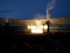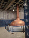 alte Brauerei. Die inzwischen modernisierten Kupferkessel in blau/weiß