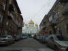 | Um eine große Kirche herum ist ein schöner Bauernmarkt - hier finden wir aber leider keinen Parkplatz. Wohl oder übel verlassen wir Rostov am Don in Richtung Krasnodar - also weiter nach Süden. Von der Organisation des Verkehrs und den Autobahnen sind wir wie vom Fahrverhalten positiv überrascht. |