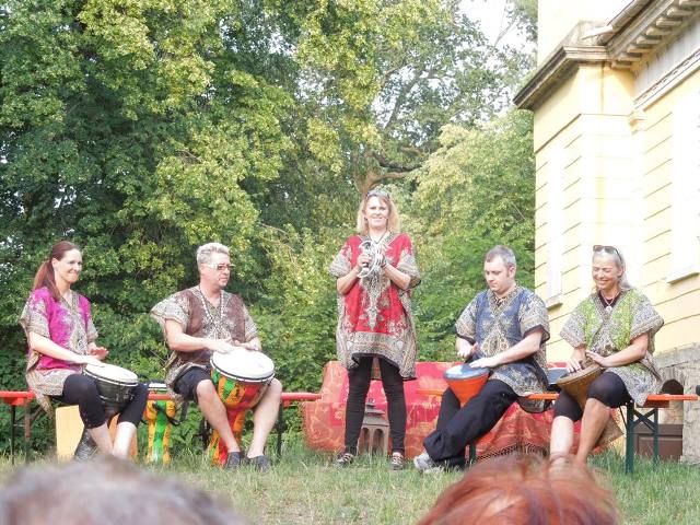 Eine gelungene Kombination von Trommeln und Märchen mit Kalliopes Schwestern am Dessauer Weinberg - 22.6.2019