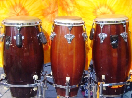 Die Conga wird besonders im afrikanischen und lateinamerikanischen Raum gespielt. Man unterscheidet sie nach Durchmesser und Tonhöhe. So klingt die Quinto mit kleinstem Durchmesser am höchsten, während die Tumba mit größtem Durchmesser die tiefste Stimmung hat. Die Conga liegt mit mittlerem Durchmesser auch in der Tonhöhe zwischen Quinto und Tumba. Durch diese verschiedenen Stimmungen wird es möglich, Melodielinien zu spielen (wie z.B. bei dem Stück "Le Serprent"). Die Tumba wird auch zum Spiel von Bassfiguren eingesetzt. |