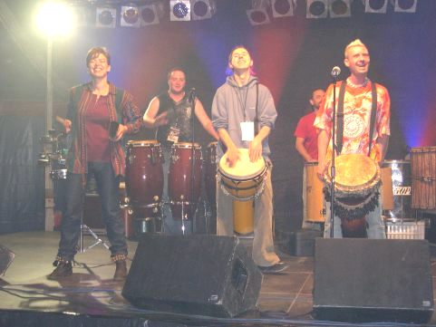 Limbadschi Toko Der Djembenrhythmus wird durch den Ruf "Limbadschi Toko" vier Mal unterbrochen, bevor schließlich alle Instrumente einsetzen. Ein einfacher Gesang bringt diese zum Verstummen, dafür erklingen sie danach jedes Mal wieder um so kräftiger. |