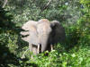 | 10.8.2012 Wir stehen früh auf, weil es noch vor dem Frühstück auf eine morgendliche Fuß-Safari geht. Wolfgang ist schuhtechnisch nicht ganz so gut ausgerüstet und leiht sich ein Paar Gummistiefel, worüber er unterwegs sehr froh ist. Auf unserer Wanderung durch den Busch werden wir von einem Guide mit Schießgewehr geführt. Er zeigt uns Warzenschweine, Antilopen, Busch- und Wasserböcke. Der Boden ist mit wilder Minze bedeckt, so sind wir ständig von einem sehr angenehmen Duft umgeben, der nur gelegentlich von einem frischen Elefantenhaufen überdeckt wird. Nachdem wir an einigen Schlammlöchern knapp zu spät kommen und nur die Spuren der Elefanten sehen, findet unser Guide dann zwei wunderbare Exemplare, denen wir eine ganze Weile durch den Wald folgen. |