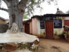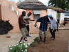 | So ziemlich genau 4 Stunden nach dem Aufwachen geht unsere erste Tour los. Abdallah zeigt uns auf einem Feld vor seinem Haus die Erdnusspflanzen und führt uns dann durch das Haus seines Vaters hindurch, wo wir in einem Baobabbaum viele lautstarke Webervögel beobachten, zu den Landlords, die über eine Straße hinweg etwas getrennt vom royal-village leben. |