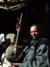 | Nachdem alle verköstigt sind, kommt der Guitarman in unsere Mitte. Jetzt haben wir Gelegenheit, uns das Instrument genauer anzusehen. Eine Kalebasse dient als Resonanzkörper, darauf ist ein Fell gespannt, durch das ein Stock gesteckt wurde, über den 2 Saiten gespannt sind, die an der Oberseite des Stockes festgeklebt wurden. Die Melodie klingt für unsere deutschen Ohren immer so ungefähr gleich. Wir empfinden diese Gitarre eher als Rhythmusinstrument. Irgendwann wünschen wir uns ein Lied, bei dem wir mitsingen können. Abdallah fällt auch schnell eines ein. Wir lernen den Song "Simo yaya". Er erzählt die Geschichte von einem schönen Mädchen, das wunderbar tanzt. Einem jungen Mann gefällt das so sehr, dass er sie gern heiraten möchte. Sie antwortet darauf: Du dummer Junge, meinst du wirklich, eine Frau wie ich hätte keinen Ehemann? |