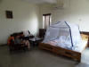 | 20.8.2012 Um 5 Uhr erschallen einige laute Schläge (in meinem müden Hirn entsteht das Bild eines Obdachlosen, der immer wieder eine Mülltonne auf den Boden stößt) und dann geht ein Trommelrhythmus los, der uns beide endgültig aus dem Schlaf fahren lässt. Genau gegenüber von unserem Zimmer wird in einem kleinen Innenhof musiziert. Die Resonanz ist unglaublich gewaltig. Mit Ohrenstöpseln und Sandwichkopfkissen (eins unterm und eins auf dem Kopf) wird die Lautstärke geradeso auf ein halbwegs erträgliches Maß - also Zimmerlautstärke - gedämpft. Und - wir haben jetzt ein kostenloses Massagebett, denn jeder Bassschlag lässt den Lattenrost unter uns vibrieren. Wir sind gerade noch einmal eingenickt, als gegen 6 Uhr ein lautes Schreien und Wehklagen beginnt - wir sind also Zeugen einer Beerdigungszeremonie geworden. Dafür haben wir ja Verständnis. Es dauert keine 10 Minuten, bis Konservenmusik aus Lautsprechern dröhnt. Die Boxenberge, die da unter unserem Fenster aufgebaut sind, sollen wohl die ganze Stadt beschallen. Gut, wenn wir nicht mehr schlafen können, stehen wir eben auf, um in Ruhe zu duschen und die Haare zu waschen. Aber es kommt kein Wasser aus der Leitung und auch die bereit stehenden Behälter sind fast leer. Dann gehen wir eben frühstücken; aber das Restaurant ist zu. Der Rezeptionist erklärt uns, dass die dafür verantwortliche Lady leider noch nicht gekommen ist. Er würde auch schon auf sie warten. Wolfgang kommt. Heute hat er den totalen Afrika-Koller (warum nur?) und will sofort sein Zimmer tauschen, weil er die ganze Nacht kein Auge zugetan hat, sich nicht duschen und nicht rasieren konnte. Dass es uns ähnlich ging, hilft ihm nicht viel. Wir haben aber inzwischen in Erfahrung gebracht, dass auch das derzeitige Gebrüll zu den Trauerfeierlichkeiten gehört - die ganze Straße ist dafür abgesperrt. Dadurch lässt sich Wolfgang beruhigen. Er nimmt dem Rezeptionisten das Versprechen ab, dass der Lärm heute Abend um 18 Uhr beendet sein wird und inzwischen ist auch unsere Frühstückslady eingetrudelt. Es schmeckt überhaupt nicht; ich glaube, wir müssen uns zu dritt ein Ei auf trockenem Toast teilen; aber wenigstens haben wir etwas im Magen, um für den Marktbesuch gestärkt zu sein. Unser Prinz hat die Unterkühlung im Bus gestern noch schlechter vertragen als wir. Ihm geht es richtig mies. |