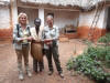 | Dann erklärt er uns die Bedeutung der einzelnen Symbole und rituellen Gegenstände, lässt uns wie auch bei den bisherigen Stätten die Möglichkeit, alles in Ruhe anzusehen und zu fotografieren. Besonders interessant sind einige Schildkröten (Zeichen der Ashanti), die hier leben und vom geistigen Hüter gefüttert werden. Der steht plötzlich mit dem Bastrock für rituelle Tänze vor uns und freut sich auch daran, sich mit uns fotografieren zu lassen. Natürlich gibt es zusätzlich zur normalen Bezahlung ein reichliches Trinkgeld dafür und Prince Abdallah erzählt uns, dass er immer froh ist, wenn er Touristen hier her bringen kann, weil das Geld dringend für Reparaturen und Renovierungen im Schrein gebraucht wird. Diese offene Ehrlichkeit, das Wissen um die Notwendigkeit der Bewahrung einer solchen Stätte und sein Interesse an diesen Dingen gefällt uns sehr. Bei den umliegenden Straßenhändlern kaufen wir Wasser und geröstete Erdnüsse, dann geht es weiter zum Bobiri-Forest. Hier freuen wir uns auf 400 verschiedene Schmetterlingsarten; aber Paul, unser Guide, erklärt uns als erstes, dass die Schmetterlinge diesen bedeckten Himmel und die hohe Luftfeuchtigkeit nicht mögen, wir deshalb sicher nur wenige sehen werden. Er entschädigt uns aber mit einer tollen Führung durch den Wald. | |